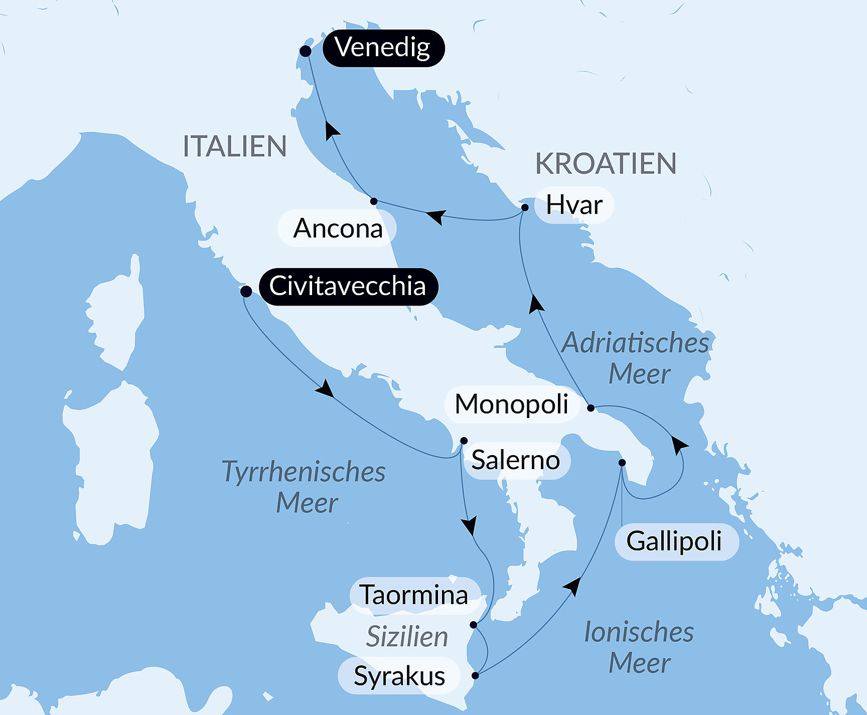 Partez à la découverte des rivages légendaires dItalie, le long des mers Adriatique, Ionienne et Tyrrhénienne, en passant par la Sicile avec une échappée à Hvar, perle insulaire croate. En mer, les paysages spectaculaires défilent entre bleu profond, collines verdoyantes, criques secrètes, villages suspendus. Chaque escale dévoile une facette de cette terre mythique, au carrefour de multiples influences : sites antiques témoins dun passé glorieux, trésors darchitecture baroque et Renaissance, places ensoleillées invitant à la dolce vita, saveurs locales... Un voyage unique où se mêlent harmonieusement passé millénaire, traditions vivantes et panoramas méditerranéens dune rare beauté.